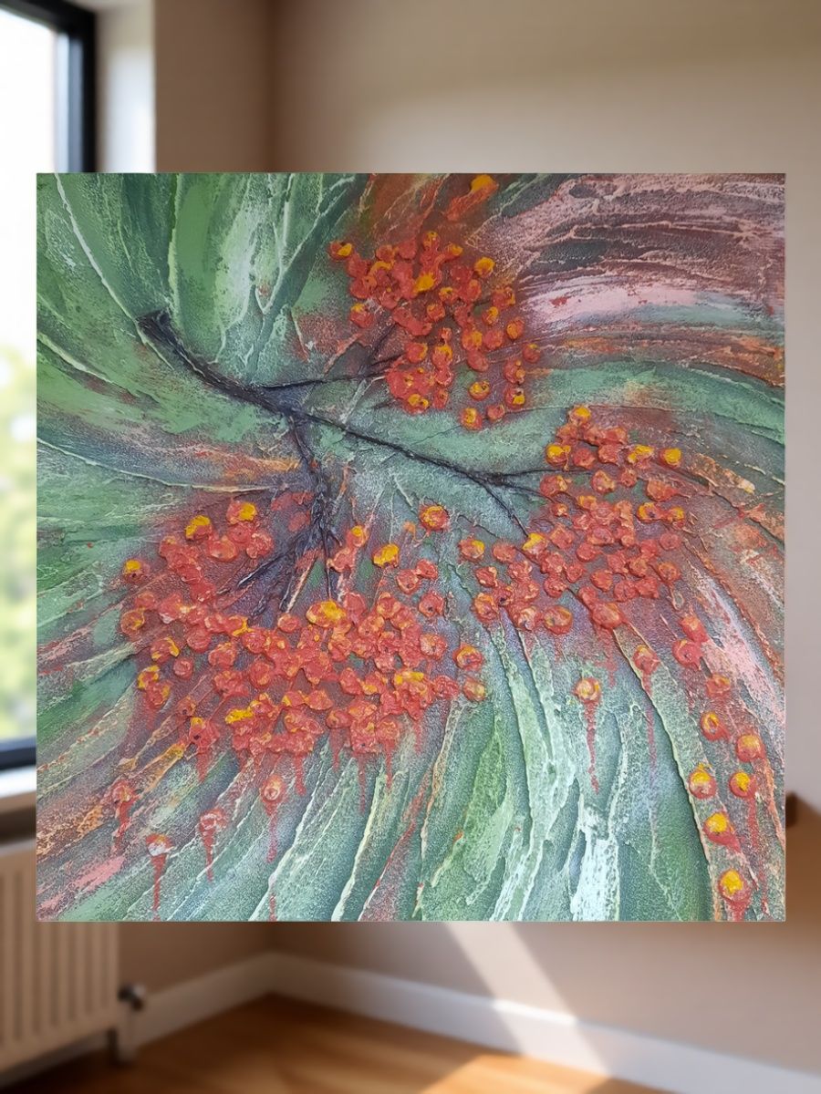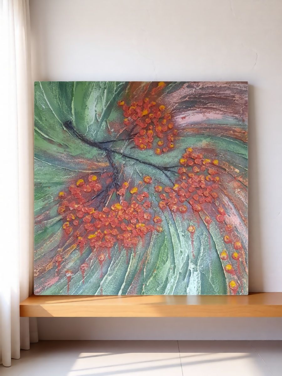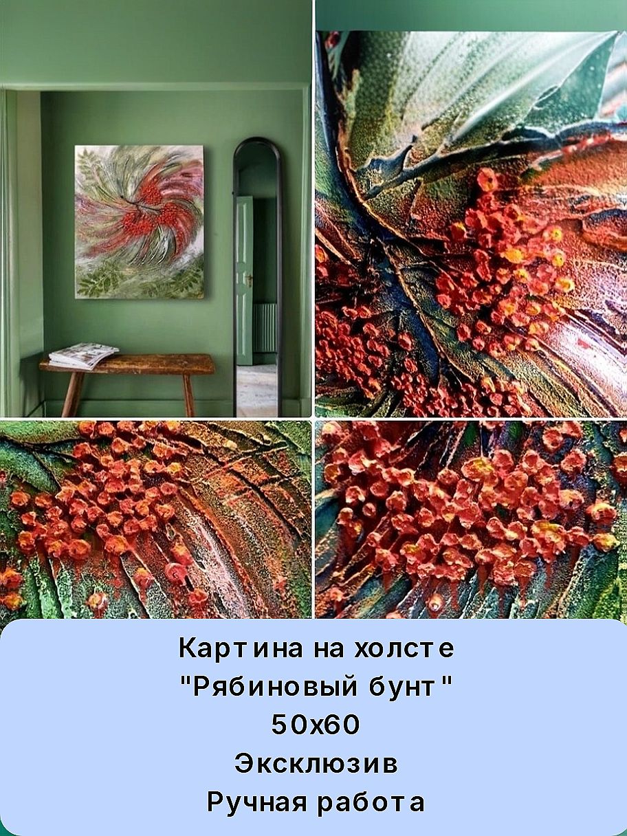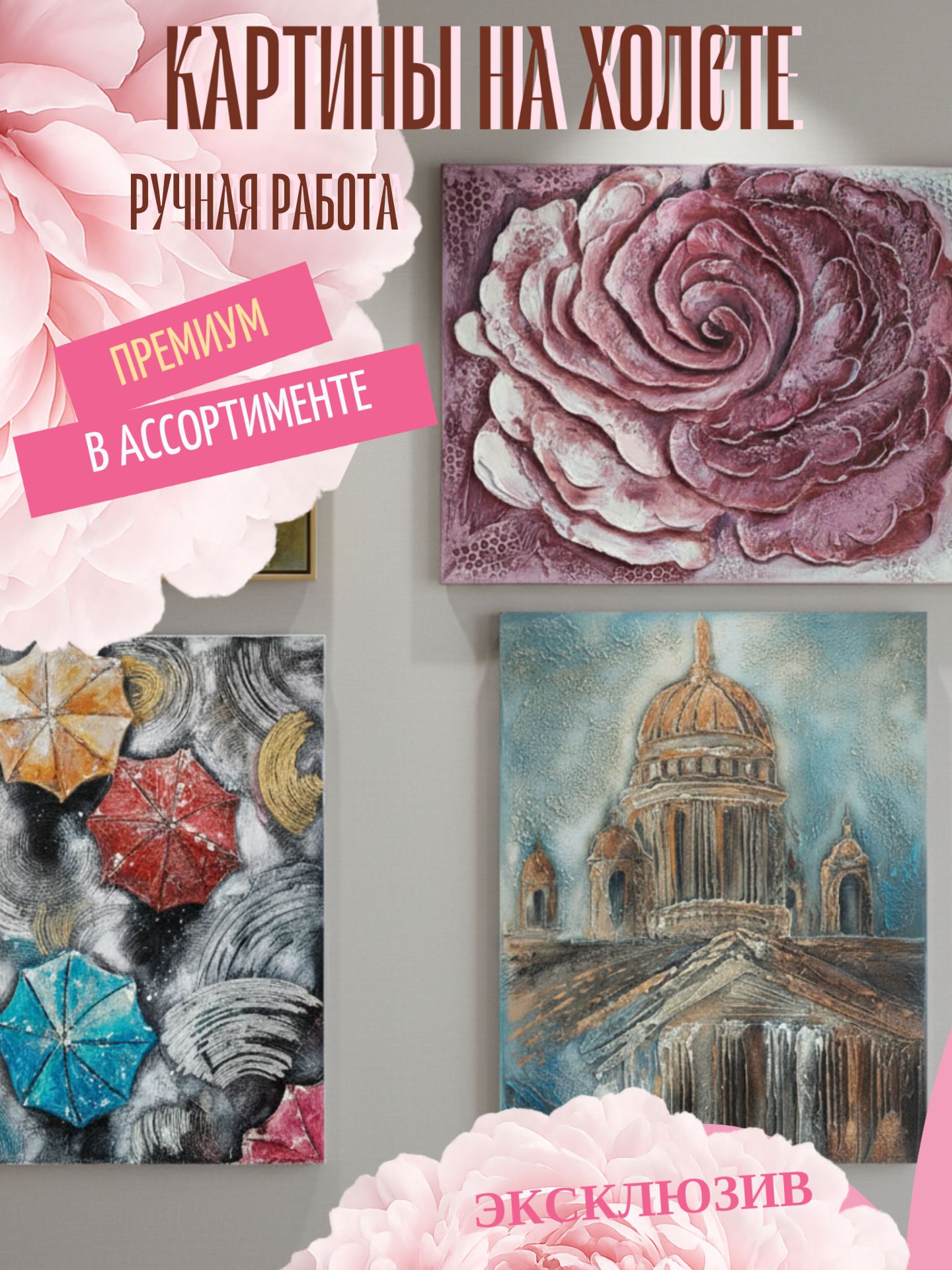 Наша эксклюзивная картина на холсте — это ручная работа, где текстурные пасты создают объёмную, рельефную поверхность, акриловые краски добавляют яркие, насыщенные оттенки, а защитный акриловый лак обеспечивает надёжную защиту. Монтированная на прочный деревянный каркас без багета, она идеально вписывается в любой интерьер, от классического до современного, придавая пространству глубину и эмоциональную выразительность. Каждая деталь подчёркивает уникальность: текстурные пасты формируют тактильную текстуру, акриловые краски устойчивы к выцветанию, а лак защищает от пыли, влаги и UV-излучения, делая картину не только красивой, но и практичной для повседневного использования.