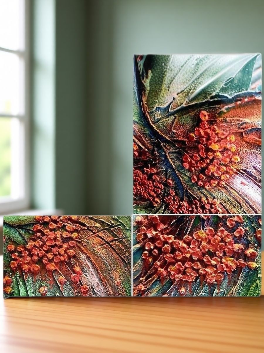 Что делает эту картину особенно надёжной? Текстурные пасты предотвращают деформации, обеспечивая стабильность в условиях переменной влажности, а акриловые краски сохраняют яркость даже спустя годы. Защитный акриловый лак добавляет дополнительный слой, защищая от механических повреждений и продлевая срок службы. В результате вы получаете произведение, которое устоит к испытаниям времени, идеально подходя для жилых комнат, офисов или подарков. Её компактность и лёгкость монтажа позволяют легко размещать на стене без дополнительных аксессуаров.