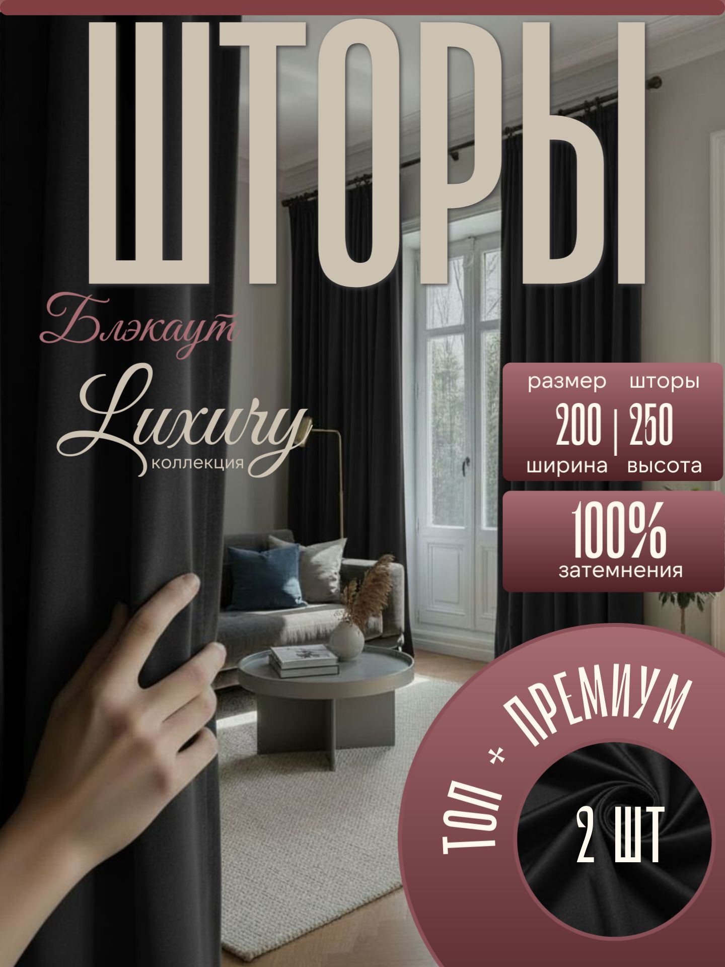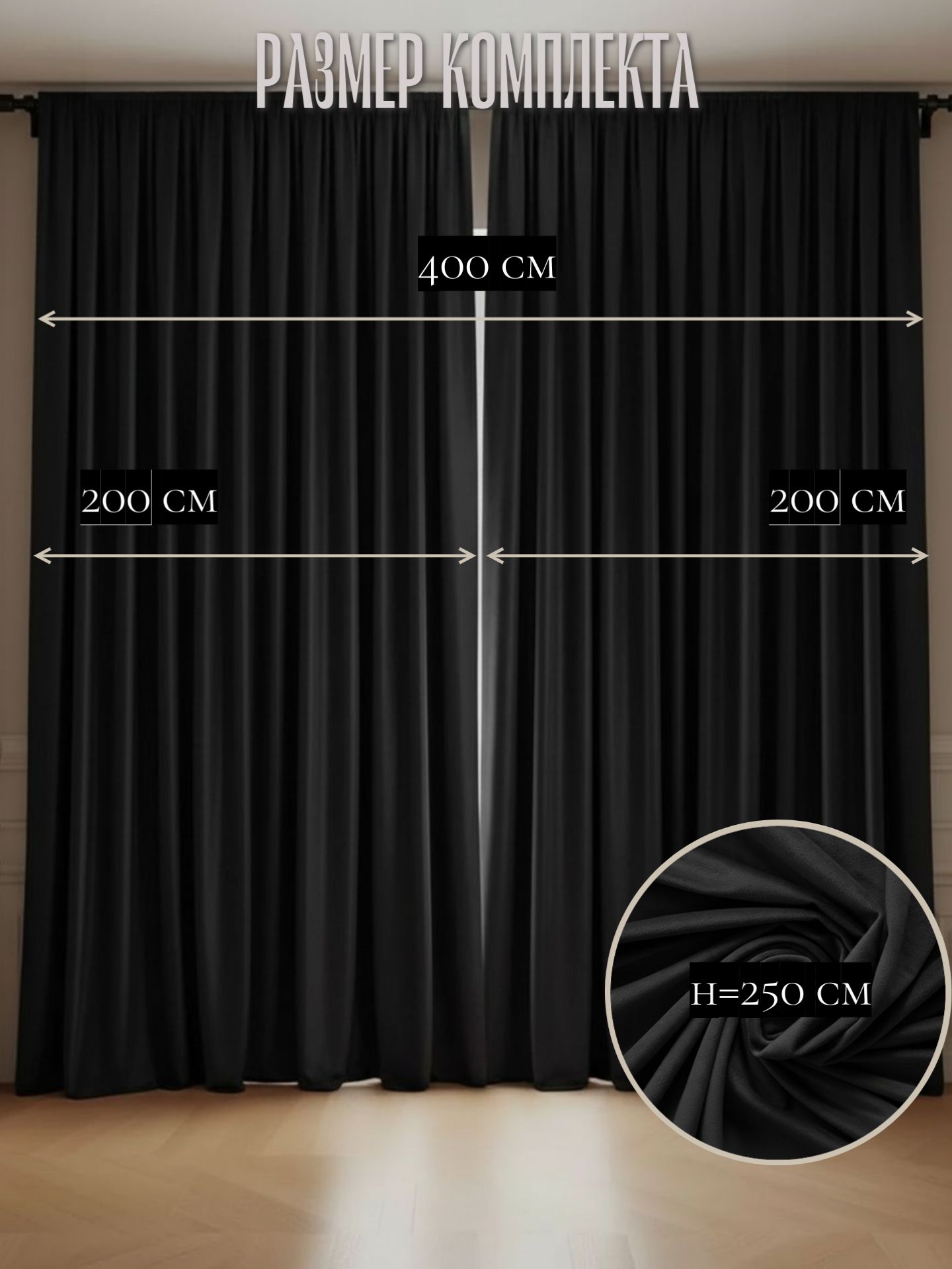 - В комплекте 2 шторы - 250см+250см=500 см (без сборки)