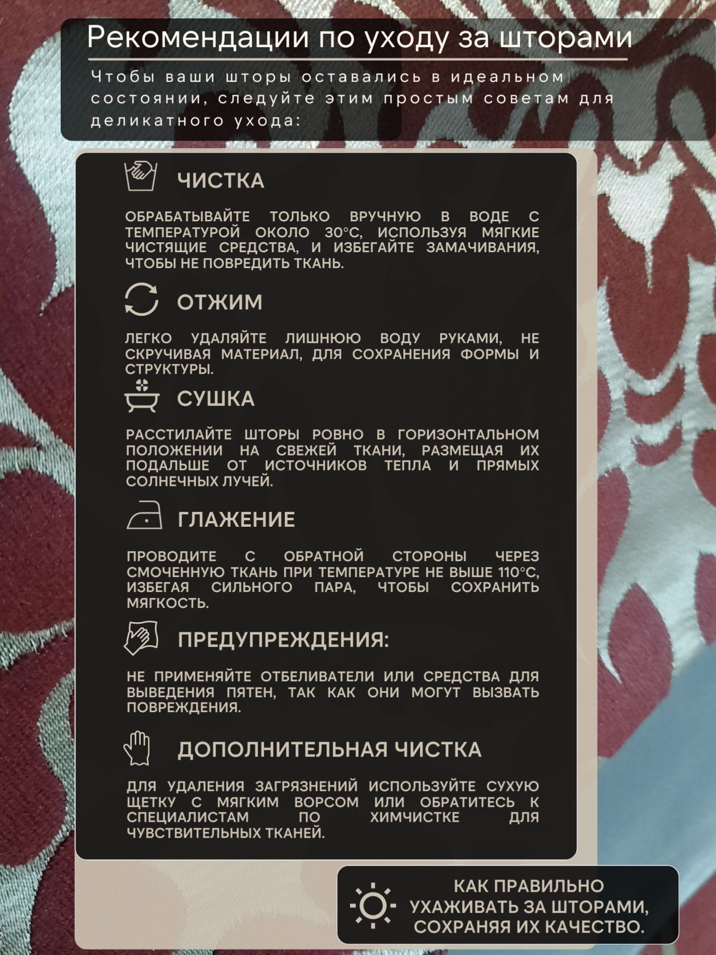 Закажите шторы из жаккарда прямо сейчас и обновите свой интерьер с ноткой эксклюзивности! Они доступны в различных размерах и дизайнах на заказ, чтобы идеально подойти под ваши окна, и станут тем акцентом, который вдохновит гостей. Не упустите шанс сделать дом ещё уютнее — ведь с такими шторами каждый день будет как праздник.